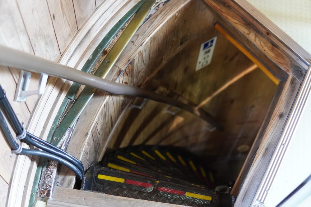 展望台に通じる部分はもっと厳しい階段。忍者屋敷のようです。
