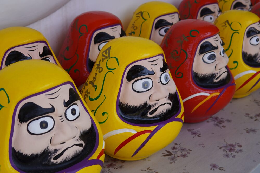 赤や黄色のだるま。
