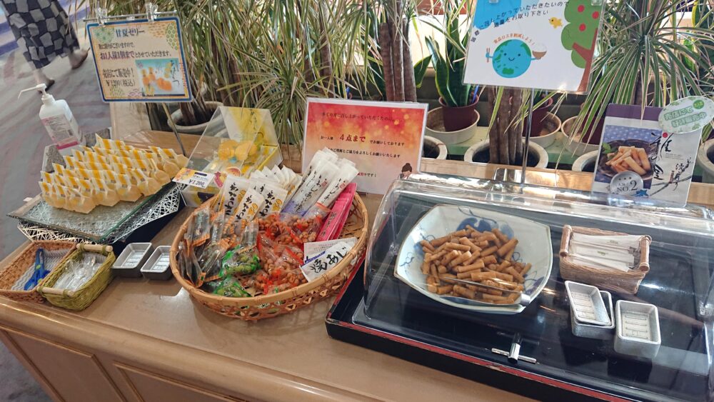 そして、おつまみコーナーのお菓子や乾き物がとっても美味しい。